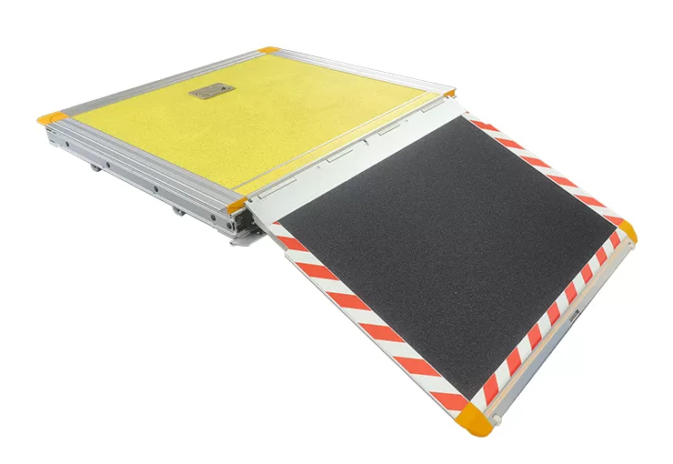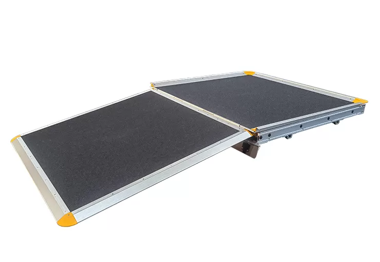 Questo prodotto combina la rampa di vibrazione e la rampa telescopica in un'unità. L'estremità superiore presenta una rampa di vibrazione manuale che è livellata con il pavimento dell'autobus, mentre l'estremità inferiore è composta da una rampa telescopica manuale/elettrica controllata da un interruttore a pulsante standard installato sul cruscotto. I clienti possono scegliere tra le due opzioni in base ai loro scenari di utilizzo. La rampa è realizzata in alluminio, pannelli in alluminio a nido d'ape e acciaio inossidabile, in modo leggero e altamente resistente alla corrosione. La superficie è stata trattata per la resistenza allo scivolamento e include caratteristiche come arresto di rilevamento degli ostacoli, rilevamento della gravità e funzionamento di emergenza manuale. Soddisfa anche i requisiti dello standard di sicurezza da GB-13094-2017 "per le strutture degli autobus"